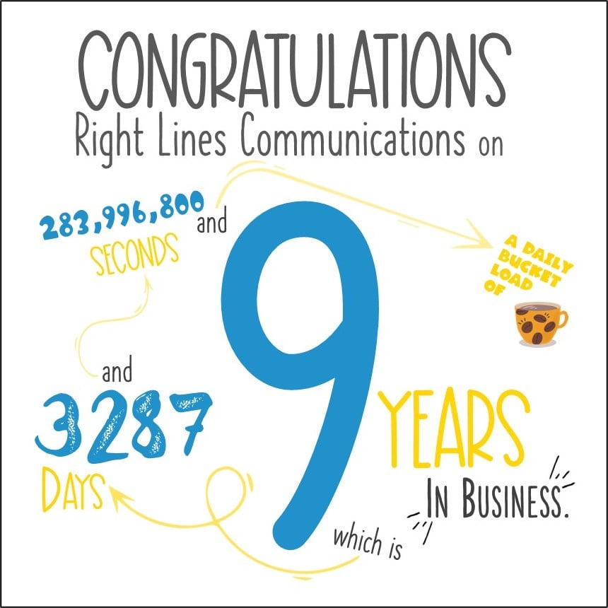 We nearly forgot to wish ourselves happy birthday. Wednesday 1st September marked the anniversary of the first day of business of Right Lines Communications, in 2012. That’s nine years and, we’re very pleased to say, still counting.